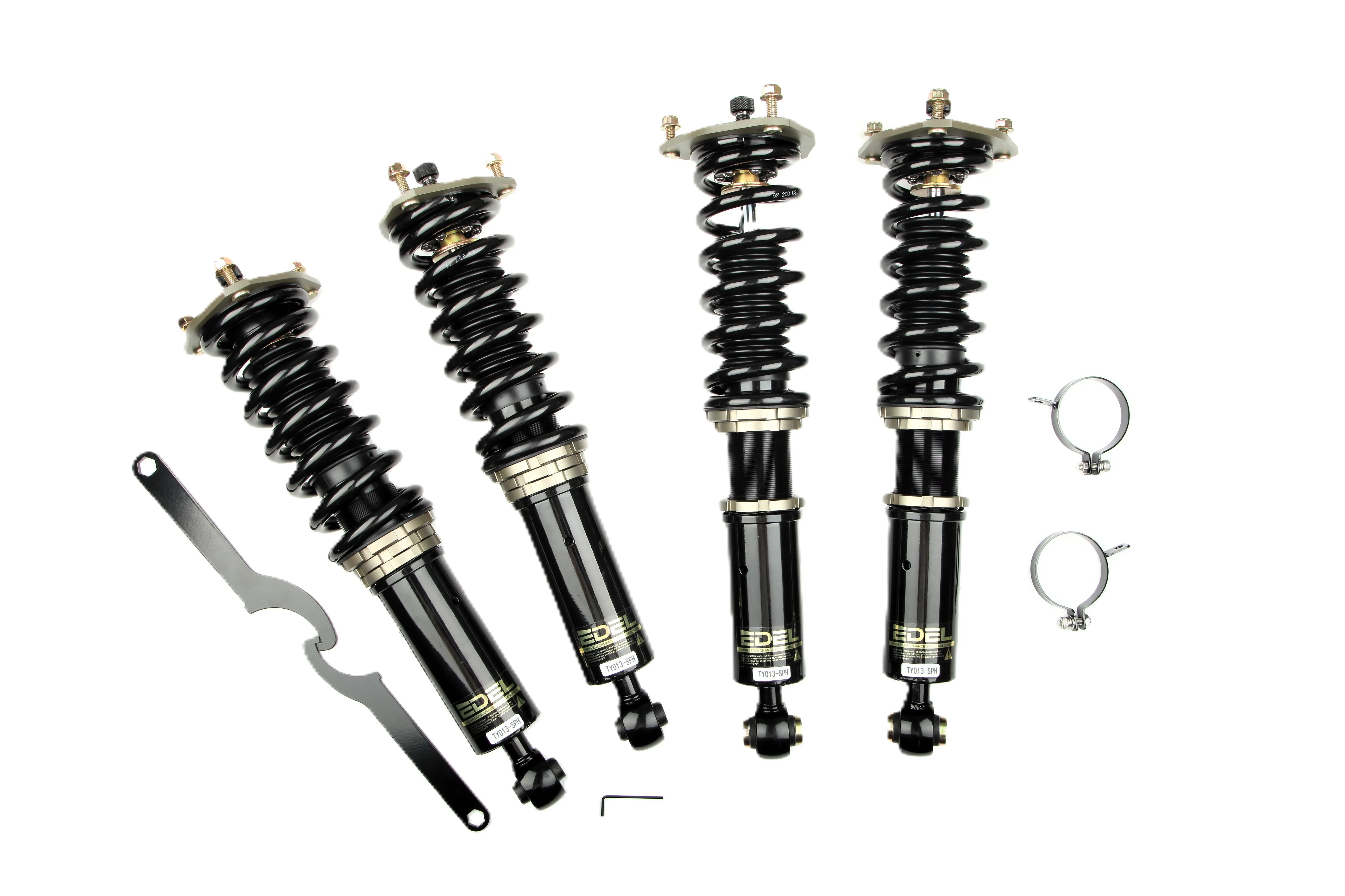 Пружины перед 8 кг, зад 6 кг. Полный комплект регулируемых амортизаторов перед + зад (4шт). Задние койловеры без шаровых соединений (на резиновых втулках). Фултап, регулировка высоты и жесткости 32 щелчка. Производство в г. Шанхай. Собственный завод.