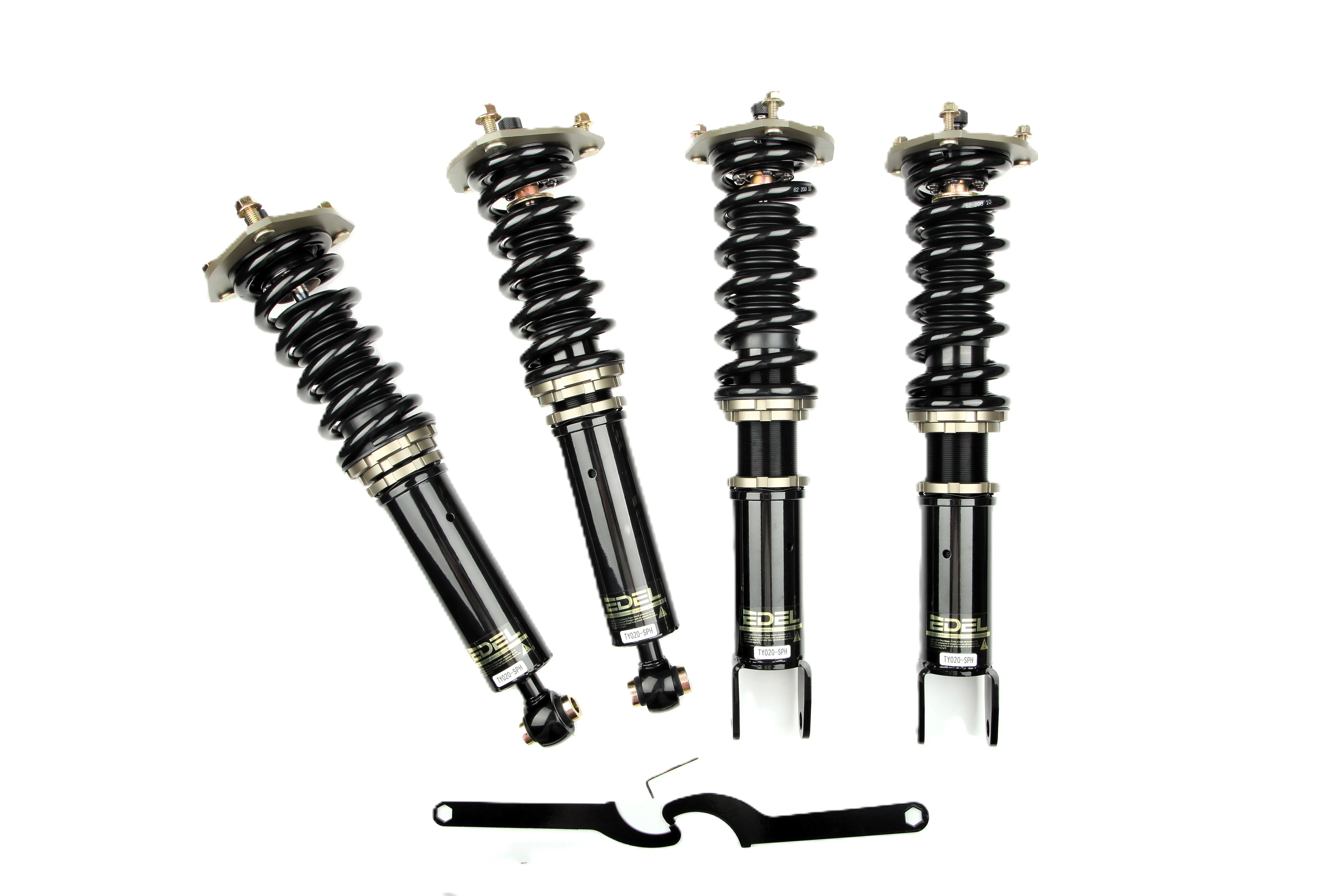Пружины перед 10 кг, зад 8 кг. Полный комплект регулируемых амортизаторов перед + зад (4шт). Задние койловеры без шаровых соединений (на резиновых втулках). Фултап, регулировка высоты и жесткости 32 щелчка. Производство в г. Шанхай. Собственный завод.