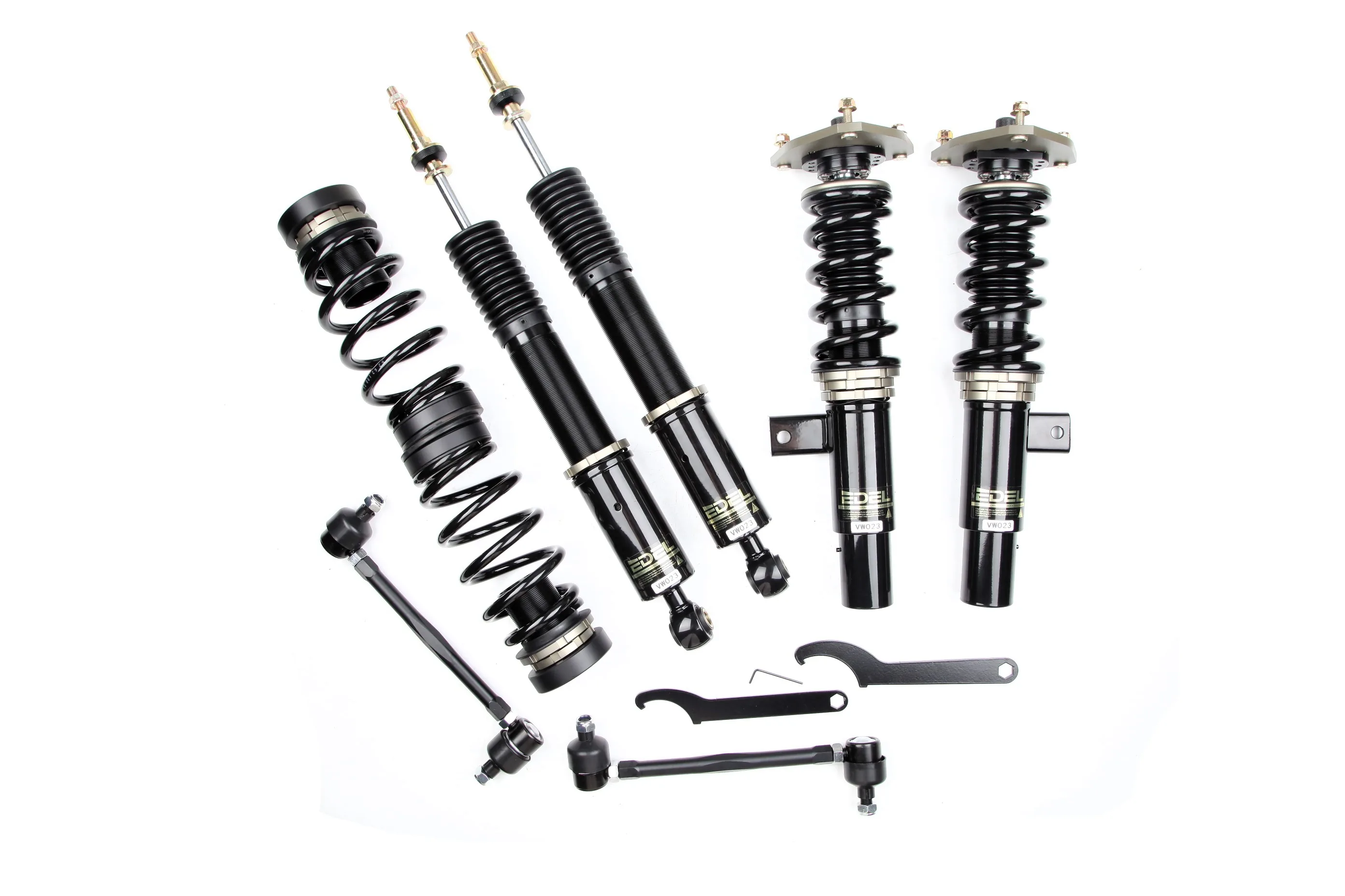 Полный комплект регулируемых амортизаторов перед + зад (4шт). Задние койловеры без шаровых соединений (на резиновых втулках). Фултап, регулировка высоты и жесткости 32 щелчка. Производство в г. Шанхай. Собственный завод.