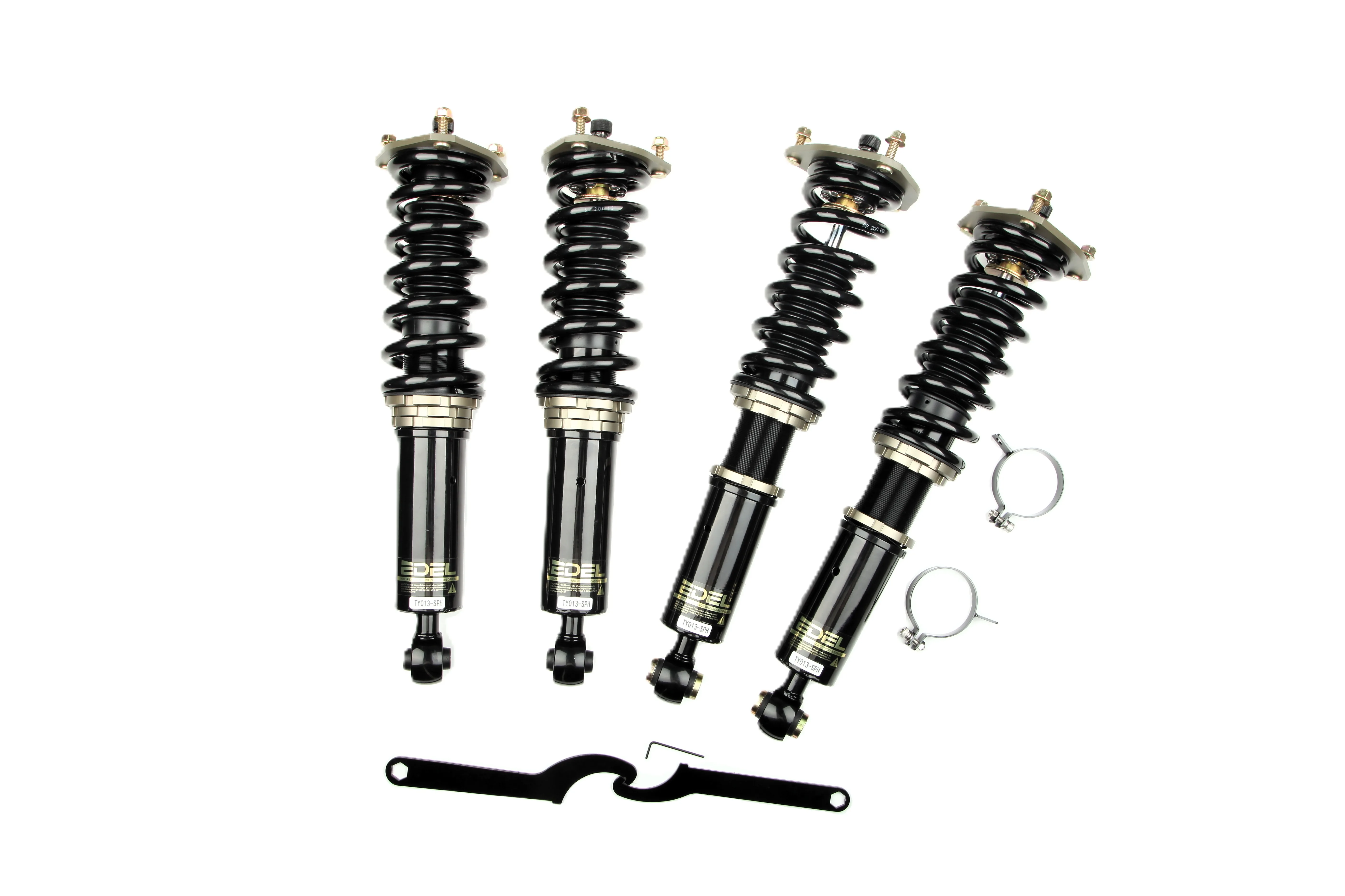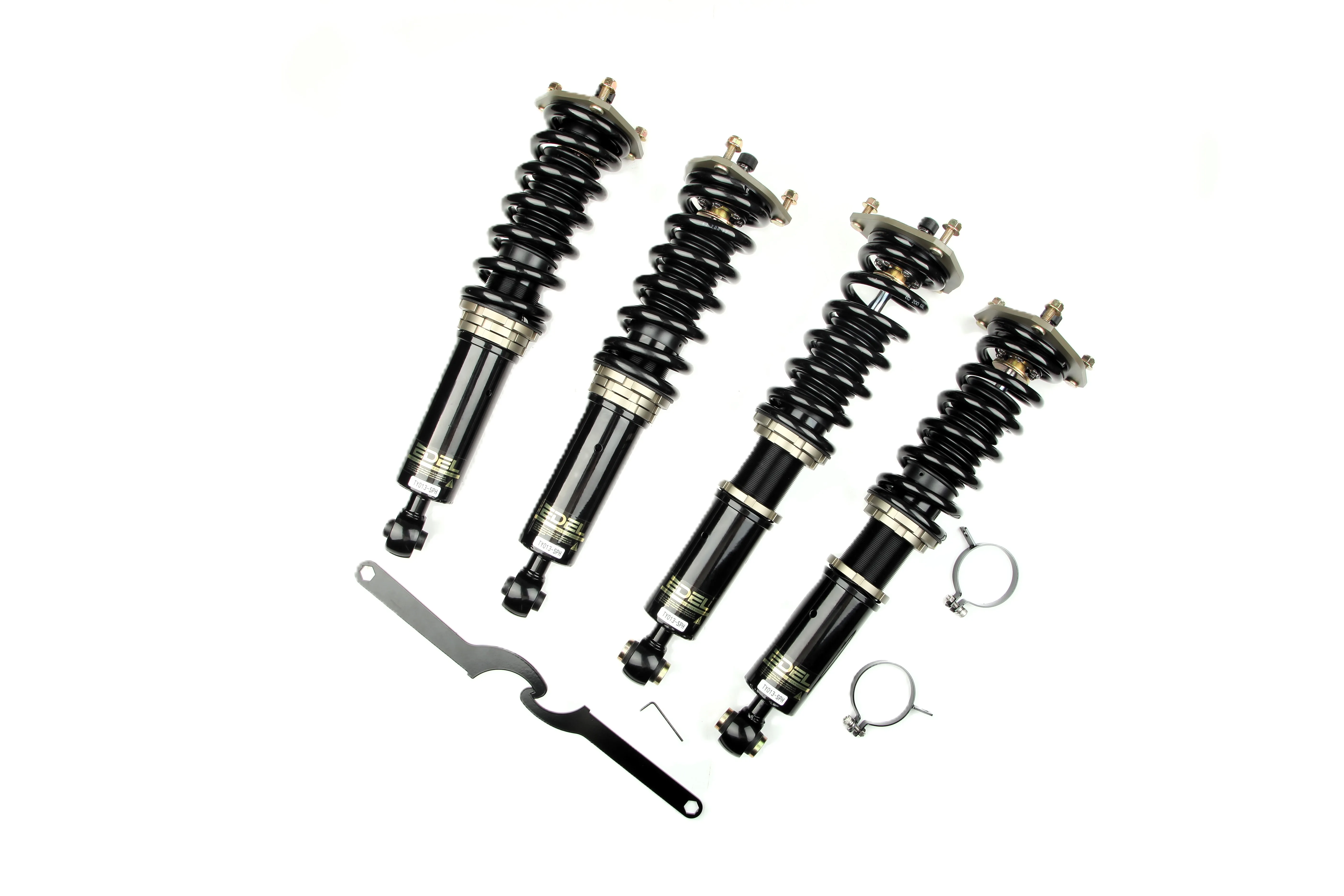 Пружины перед 8 кг, зад 6 кг. Полный комплект регулируемых амортизаторов перед + зад (4шт). Задние койловеры без шаровых соединений (на резиновых втулках). Фултап, регулировка высоты и жесткости 32 щелчка. Производство в г. Шанхай. Собственный завод.