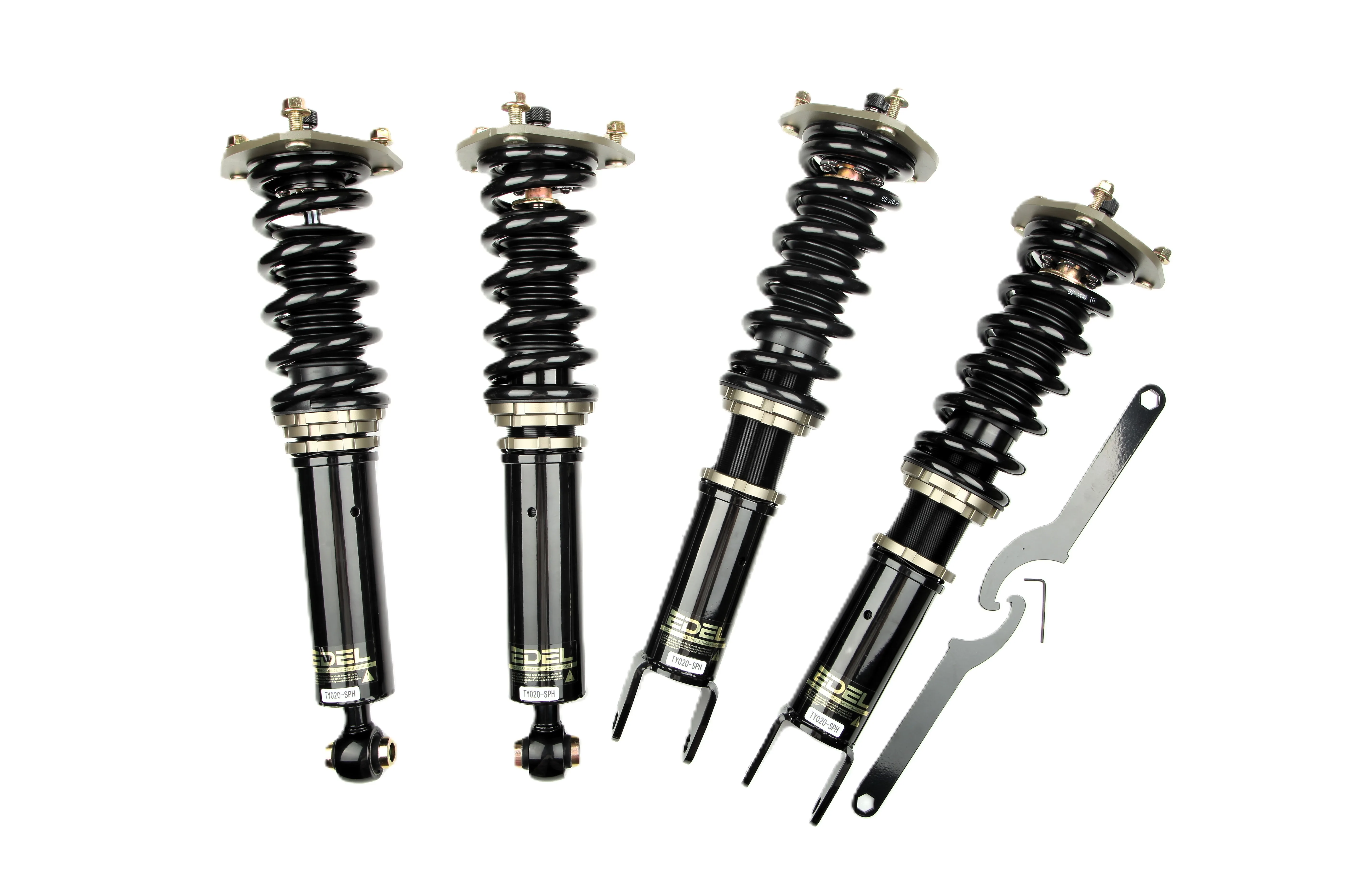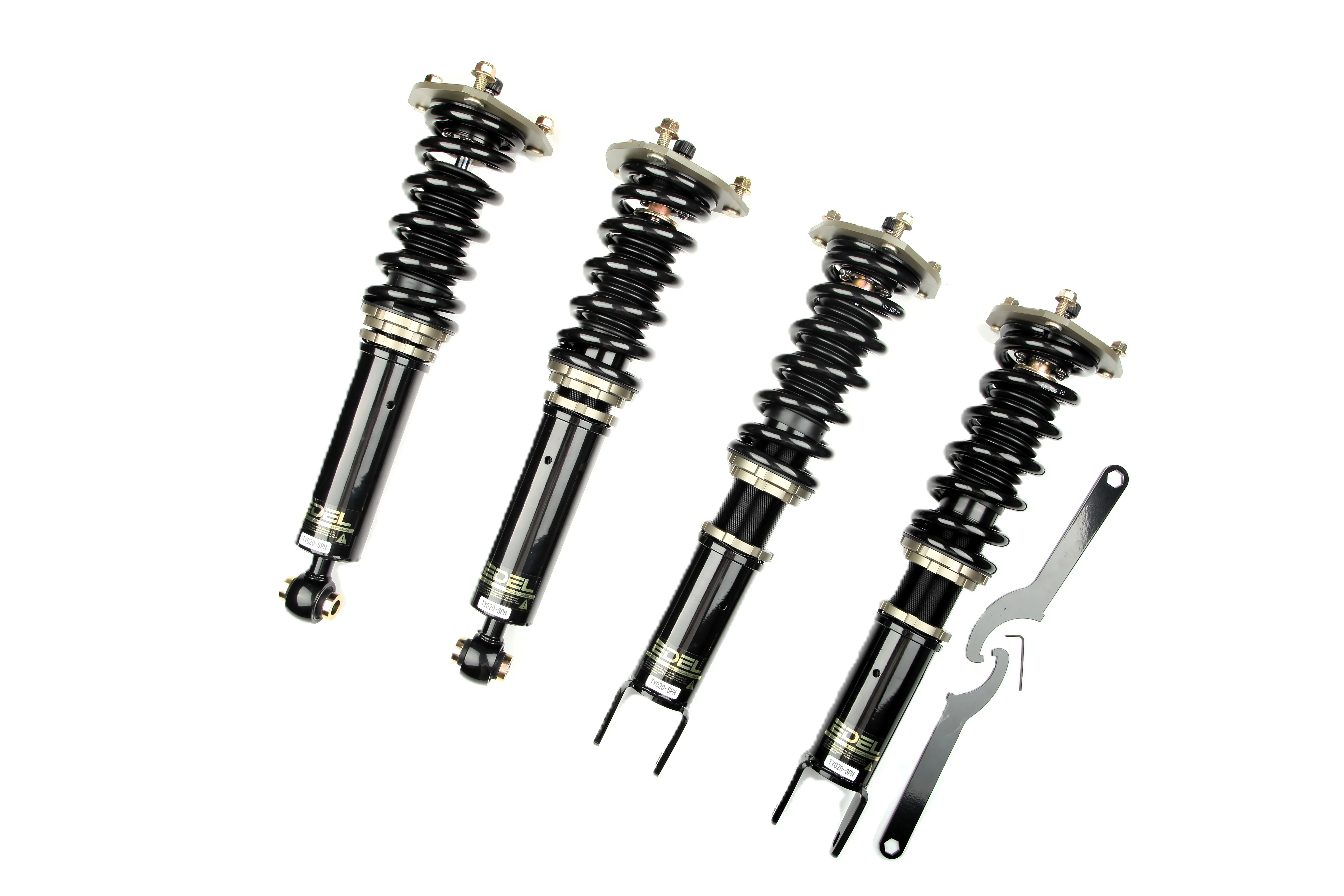 Пружины перед 10 кг, зад 8 кг. Полный комплект регулируемых амортизаторов перед + зад (4шт). Задние койловеры без шаровых соединений (на резиновых втулках). Фултап, регулировка высоты и жесткости 32 щелчка. Производство в г. Шанхай. Собственный завод.